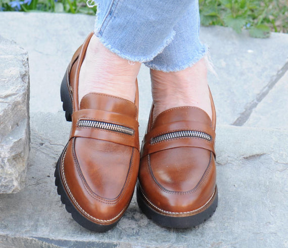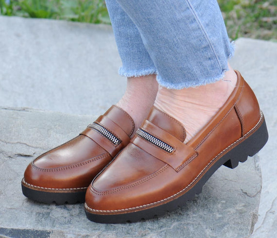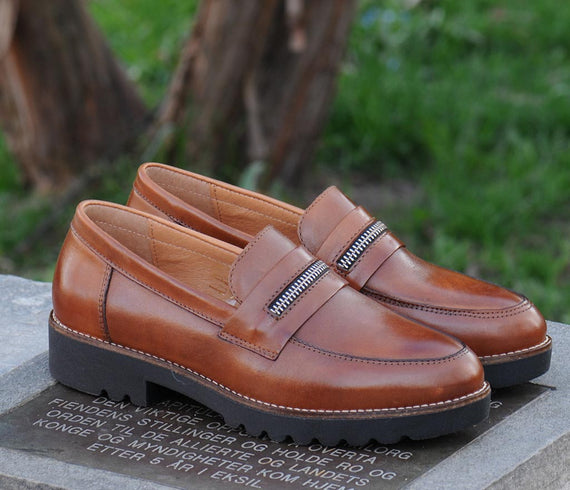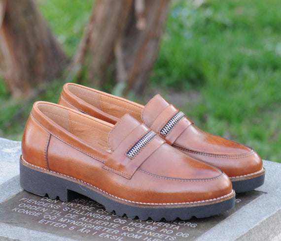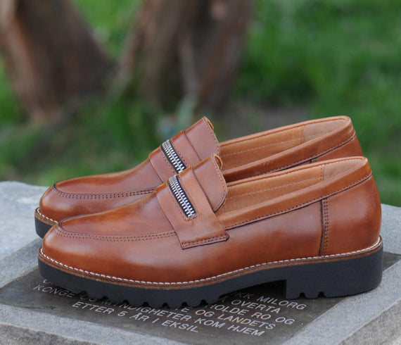 Zinza - Loafer med de små detaljene i cognac skinn.